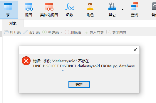错误:字段"datlastsysoid"不存在LINE 1: SELECT DISTINCT datlastsysoid FROM pg database