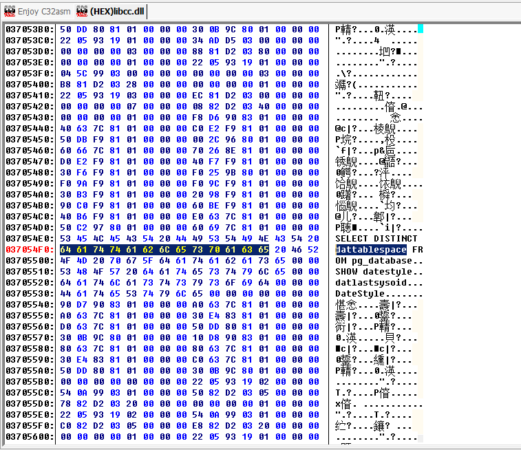 4、在文件中搜索“SELECT DISTINCT datlastsysoid”,并将其替换为“SELECT DISTINCT dattablespace”
