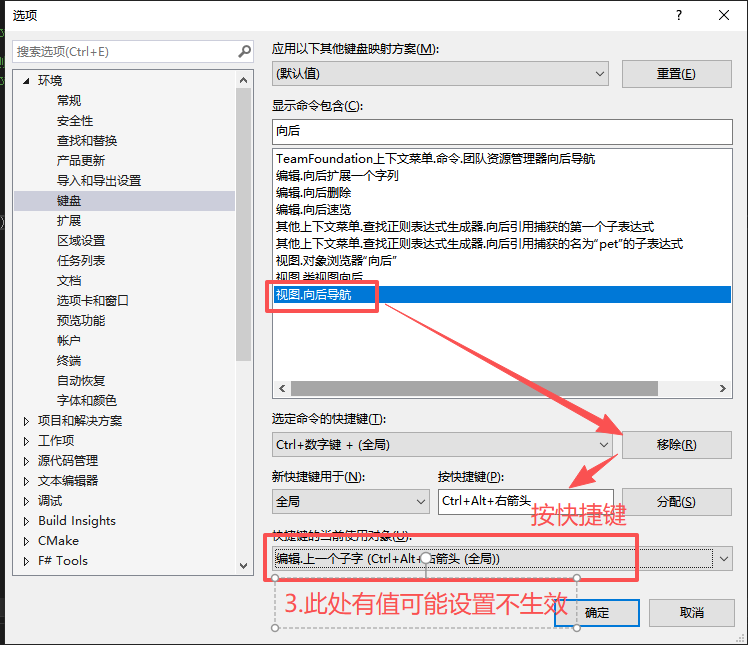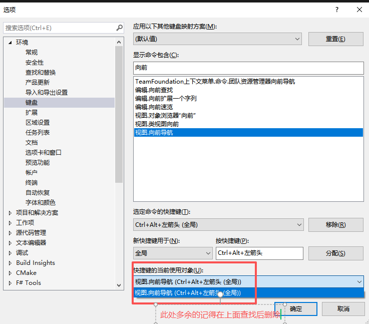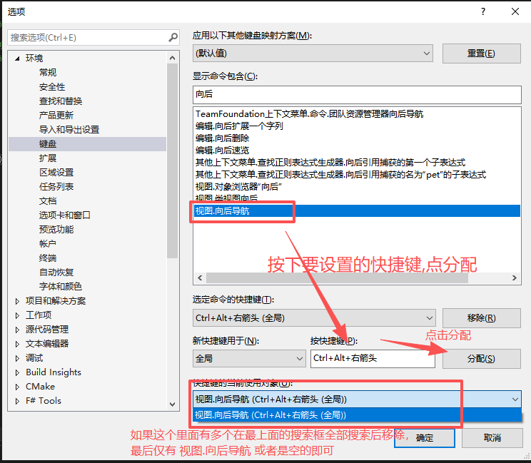 visual studio 2022跳转到上一个/下一个光标处的快捷键设置