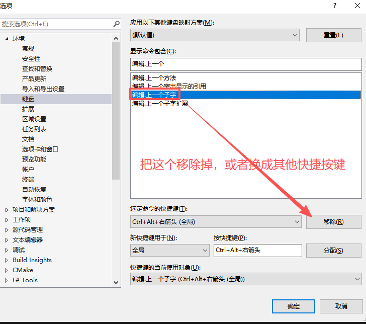 把其他使用你要设置的快捷按键全部移除掉,如图